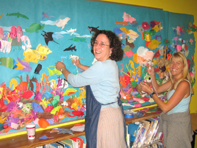 "Today was one of those kinds of days that remind me how much I like working in a school. My office is in the library and I could hear the laughter from the audio visual room where children's book illustrator and artist Robin Brickman was giving a PowerPoint presentation to the kindergartners about making a sea-life, three dimensional mural. Another librarian said I should sit in on one of her working sessions as she was giving all the students, K-5, the experience of making 3-dimensional art for inclusion in a mural." F.P., Chadwick Village School, CA