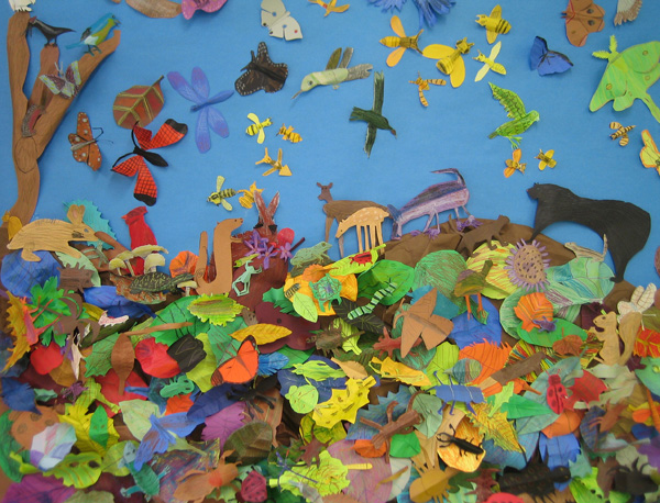 A school in Vermont asked me to adapt my Log's Life Mural Project to support their anti-bullying theme. We decided that the close proximity of predators and prey could express this idea. After this succesful program I decided to include a Peaceable Kingdom in my workshop listings.